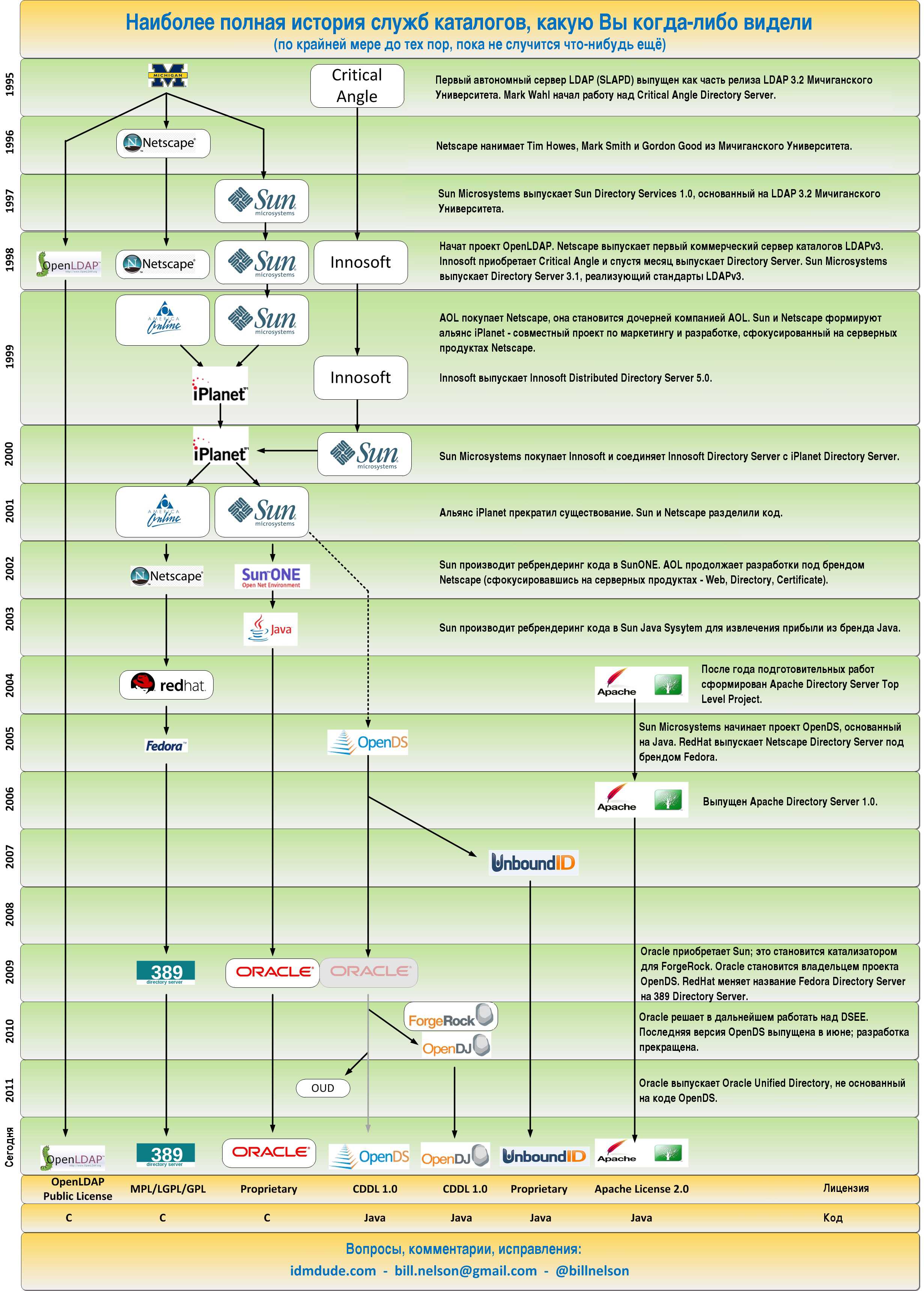 Bill Nelson, 13 апреля 2012 года. Оригинал статьи и обсуждение по адресу http://idmdude.com/2012/04/13/the-most-complete-history-of-directory-services-you-will-ever-find/.